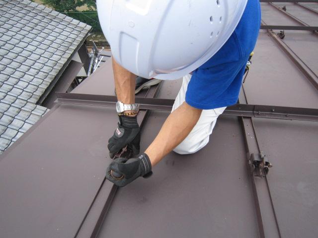 左は母屋で陸屋根なので今回は右側の旧整骨院の屋根に