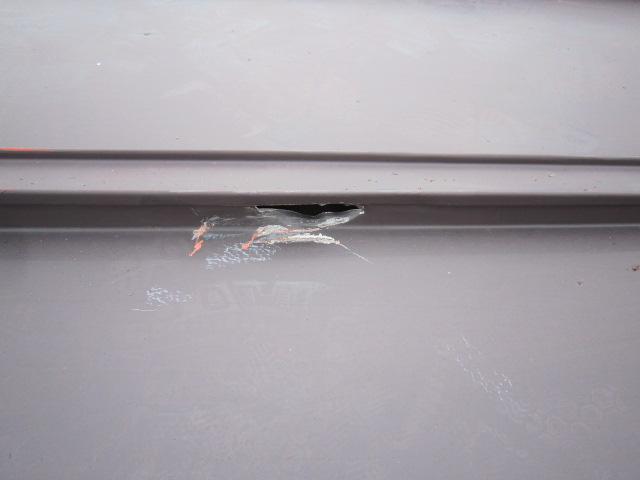雪降しの時にスコップをぶつけて穴が、、、留め金具の