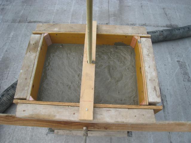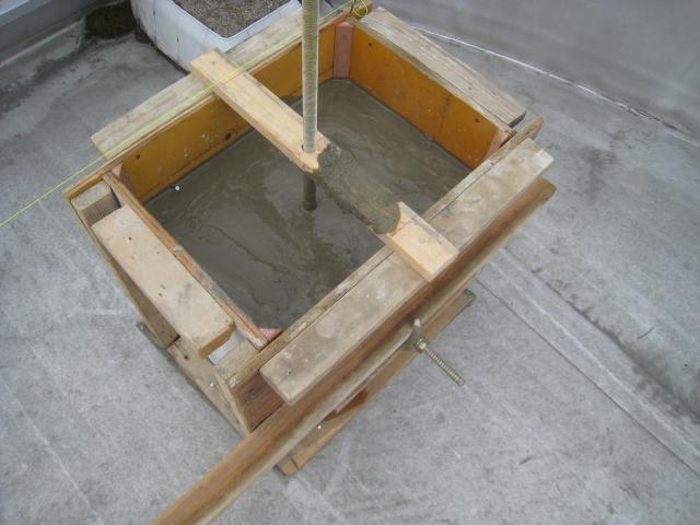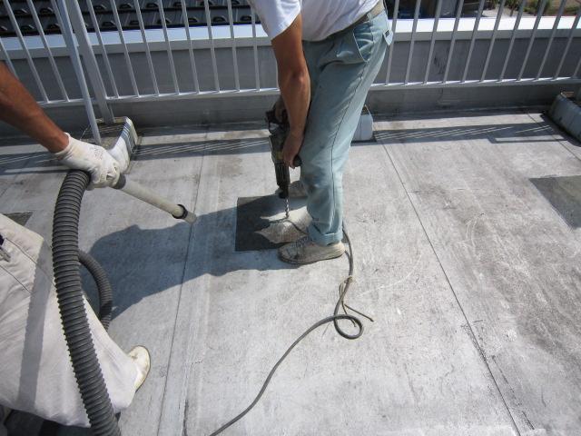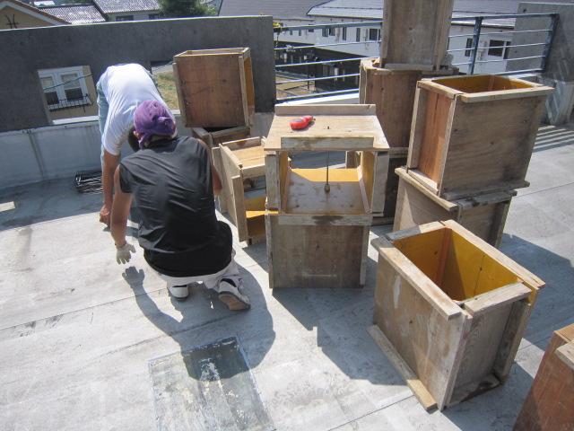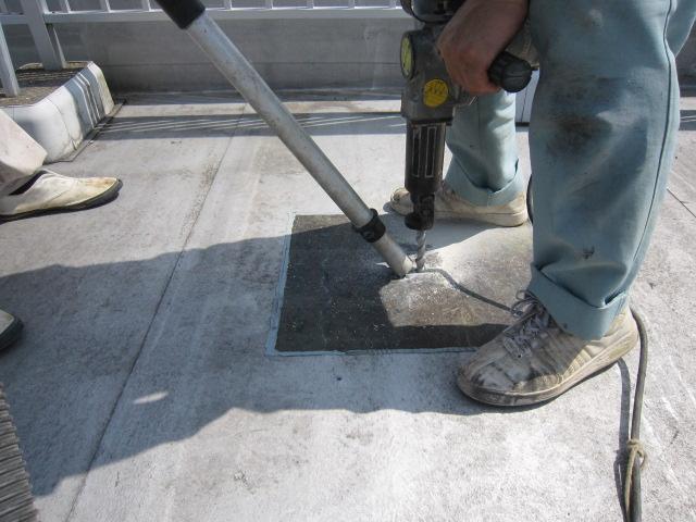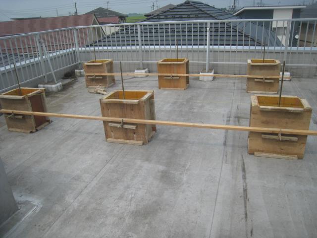 屋上は水平じゃないのでコンクリートの高さのレベルを測り