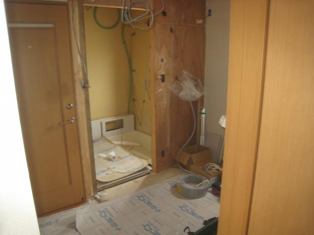 トイレと並行してホーロパネルを袖壁に貼りました。