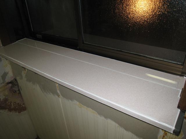 出窓のカウンター部分までキッチンパネルは貼らないとの事なので先に自分で