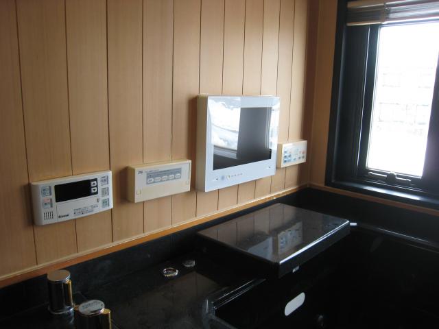 右側の給湯リモコンを移動してTOTO製の14インチを真ん中に設置しました。
