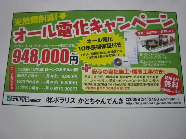 スタッフブログ 2009年9月10日光熱費削減オール電化キャンペーンのご案内です。