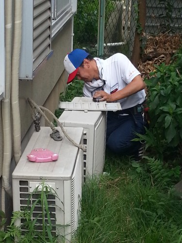 そんな中、エアコンの現場にわたくしは女性ですが同行させて頂きました。