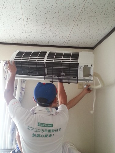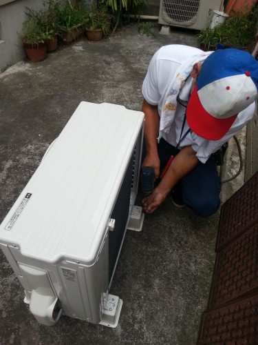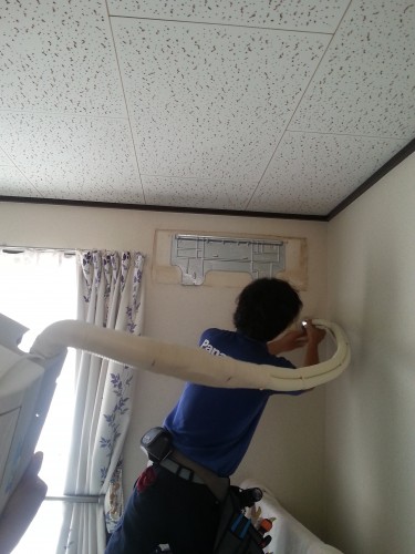 ここで、私はお客様のお部屋にお邪魔して、エアコンのコンセントを差込口に入れて試運転を開始です。