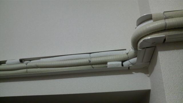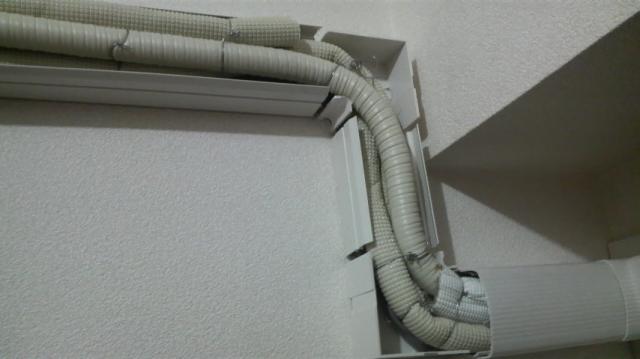 その後あけてもらった穴に配管を通し外には配管用のカバーをつけお部屋を掃除させて頂いて完了です。