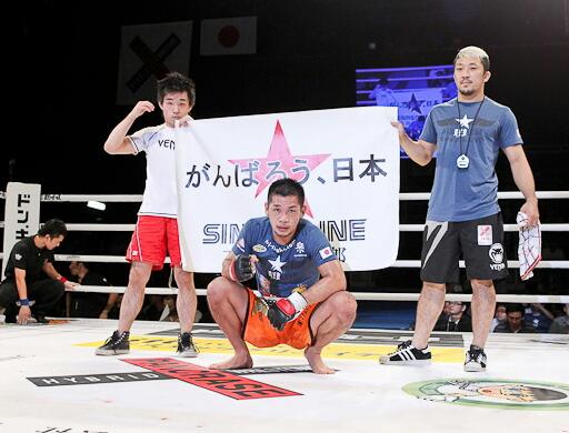 手塚選手と対戦し、見事に判定勝ちをおさめました。