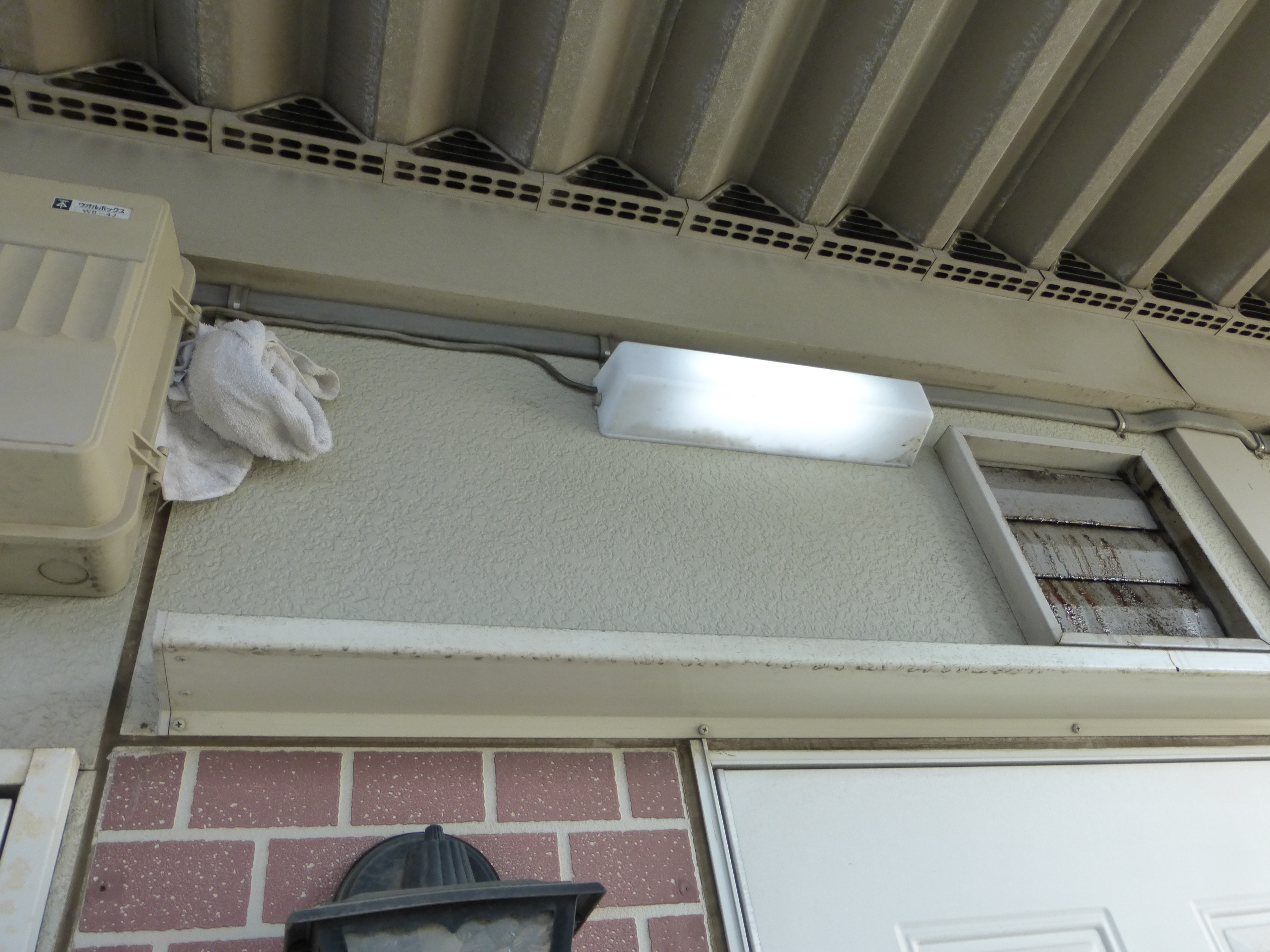 周りが暗くなると自動的に照明が付く(電気が通る)タイプでして、午後からの工事だったので電気は通っていない状況なわけです。