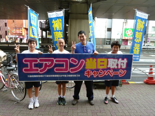 アベ店長のエアコン修理にも同行です。