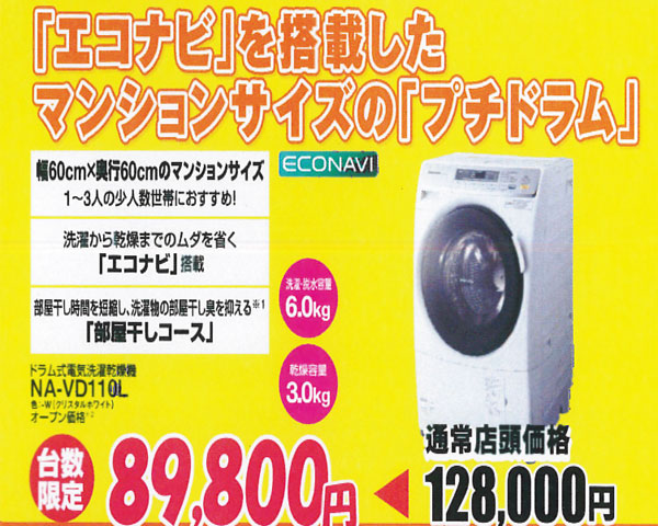 ④パナソニックのマンションサイズ「プチドラム洗濯乾燥機」