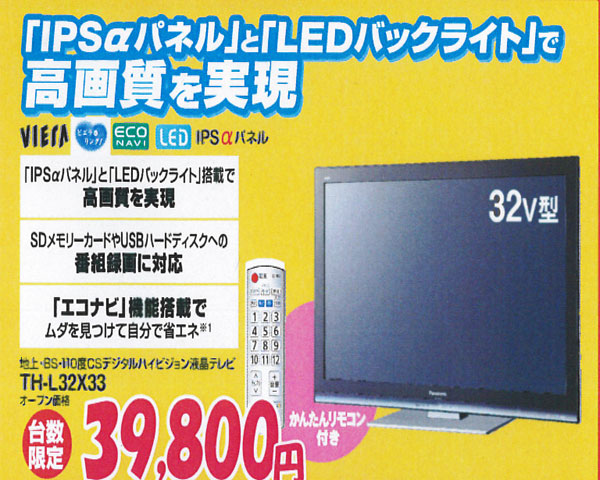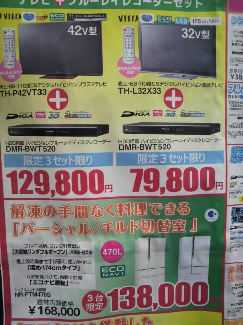 ②パナソニック TH-L32X33+DMR-BWT520をセットで