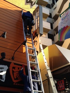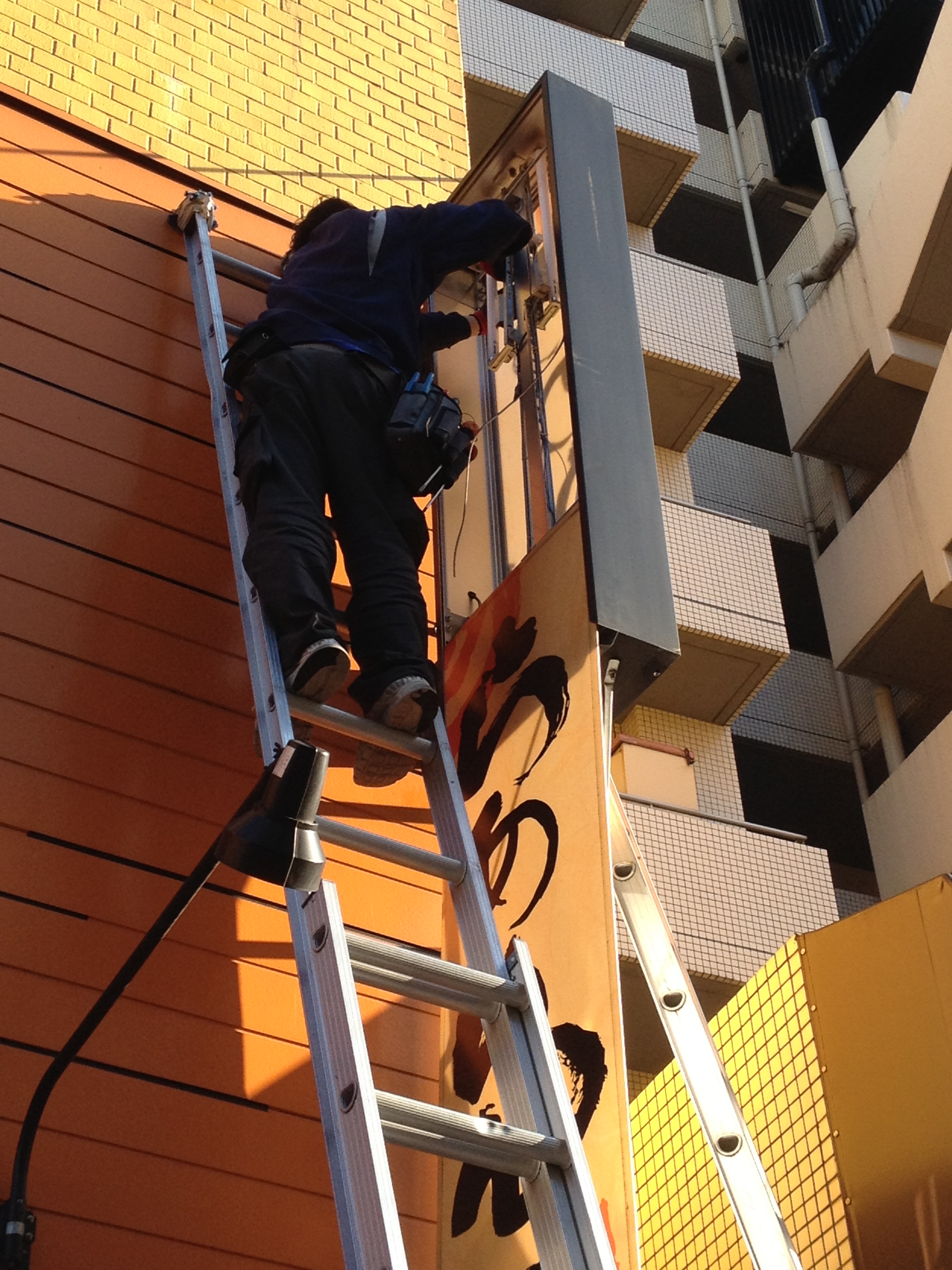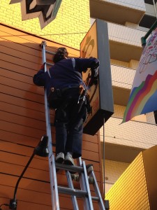 まず、看板を外して蛍光灯を交換します。