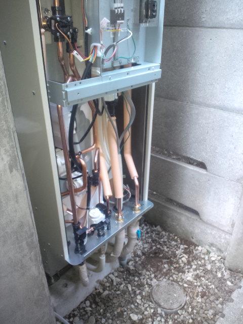 パナソニックの薄型フルオートとダイキン床暖房用ヒートポンプを設置します。