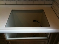 IHクッキングヒーターの操作部はヒーターの前にありますが今まであった操作部は外すと穴だけになってしまうのでプラスチックのパネルを貼って隠します。