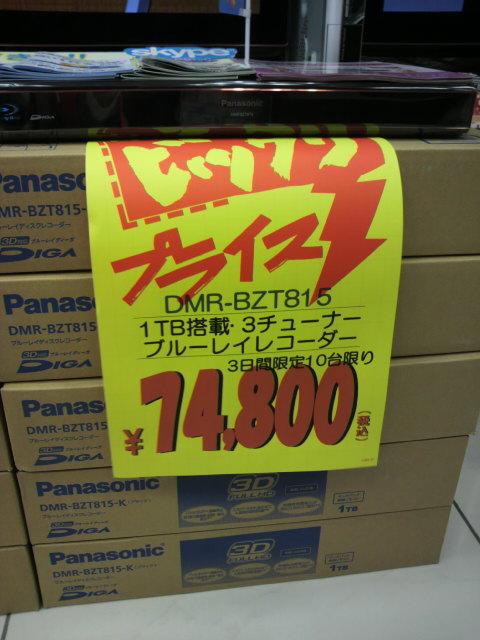 当店からのお知らせ 2011年12月4日パナソニックプロショップ限定モデル DMR-BZT815 3Dブルーレイレコーダー
