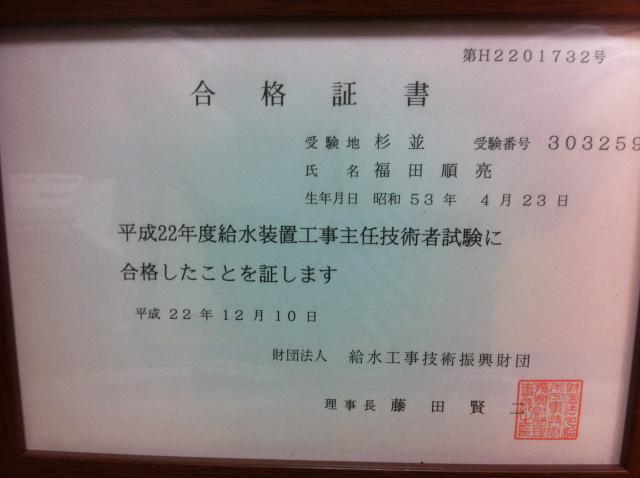 給水工事を行いますが、実は給水工事には資格がいるのです。
