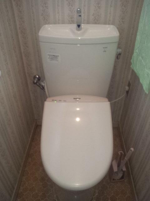 取り付けてあった温水洗浄便座も新しい便器に再度取り付けました。