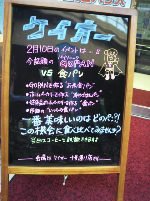 当店からのお知らせ 2012年2月9日いよいよ明日はパナソニックのGOPAN SD-RBM1000を使ってケイオー十号通りで「食べ比べ」をするイベントの開催です!