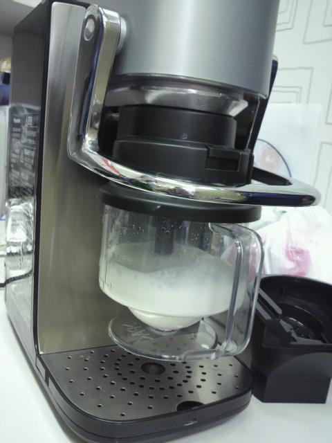 画像はエスプレッソに入れるフォームドミルクを作っているところです。