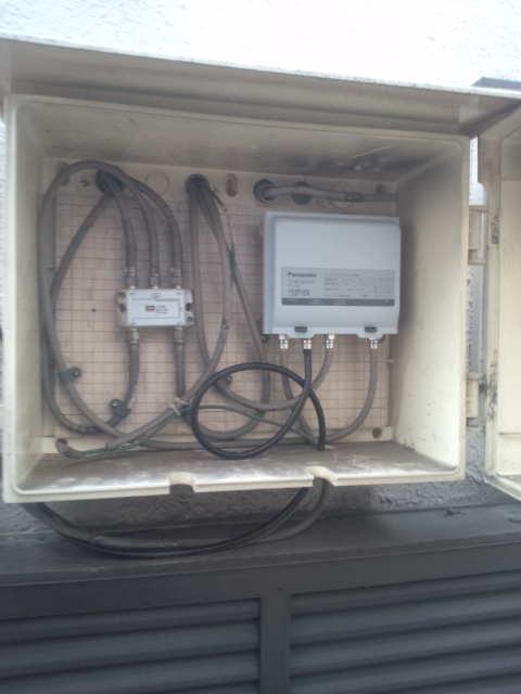 渋谷区笹塚にてアンテナ工事…電波障害ケーブルの巻