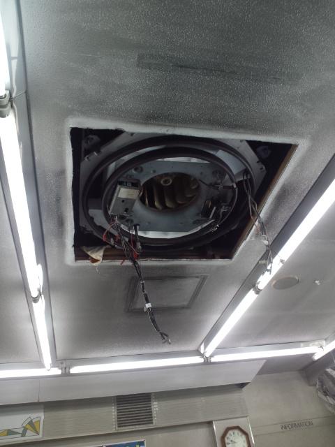 2台ある天井埋め込み(天カセ)型エアコンのうち1台が調子が悪く