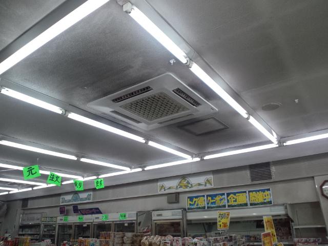 コンビニエンスストアの店内の温度が上がると食品類に影響がでる恐れがあるため大急ぎで工事しました。