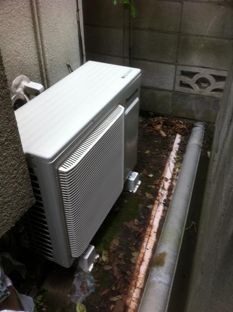 エアコン工事, ケイオー日々の仕事 2011年7月11日東京都渋谷区幡ヶ谷のエアコン工事です。FF式冷暖房が設置してあり、穴を開けないで