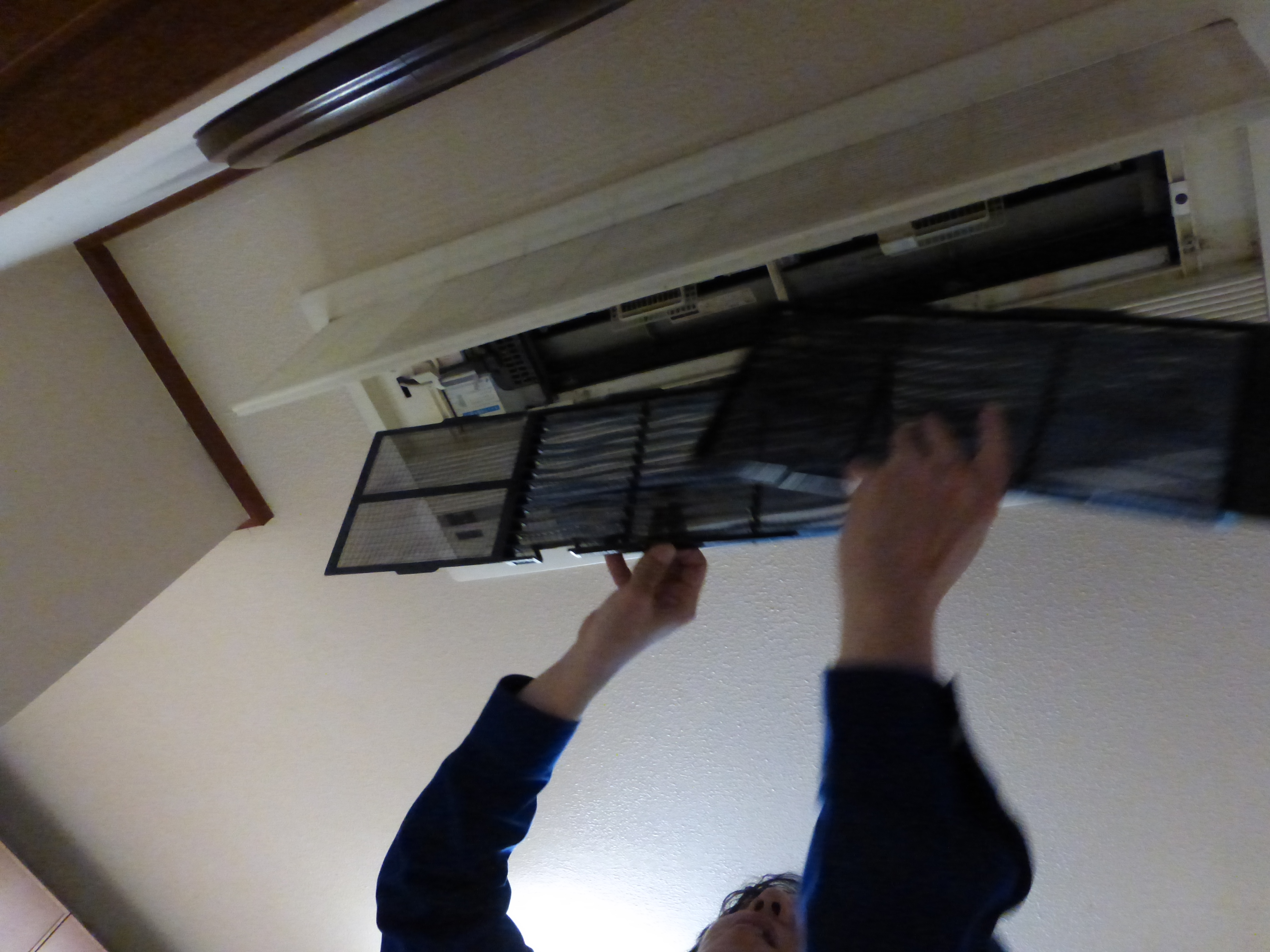(宮原)エアコンのフィルターを取り外して、