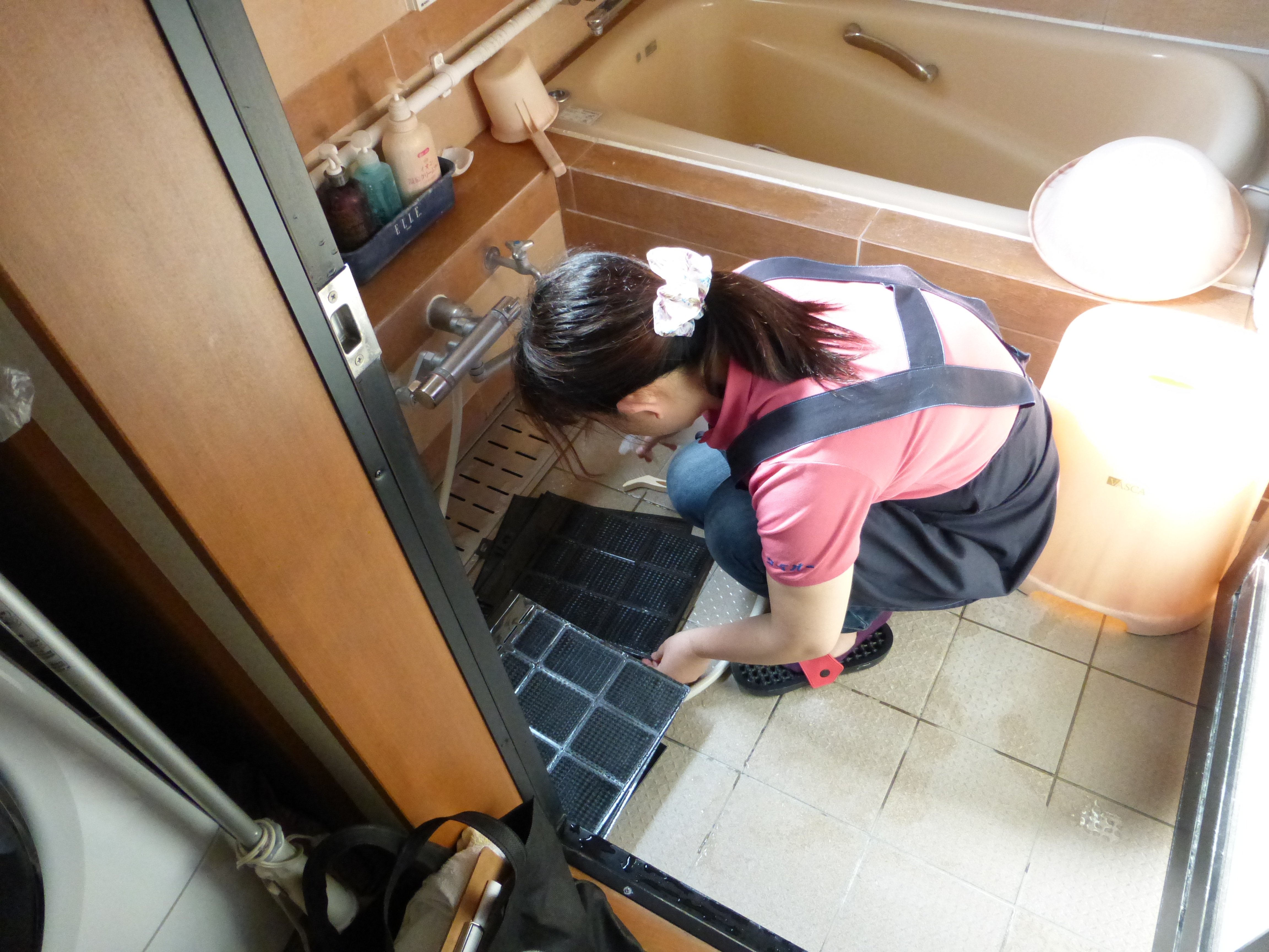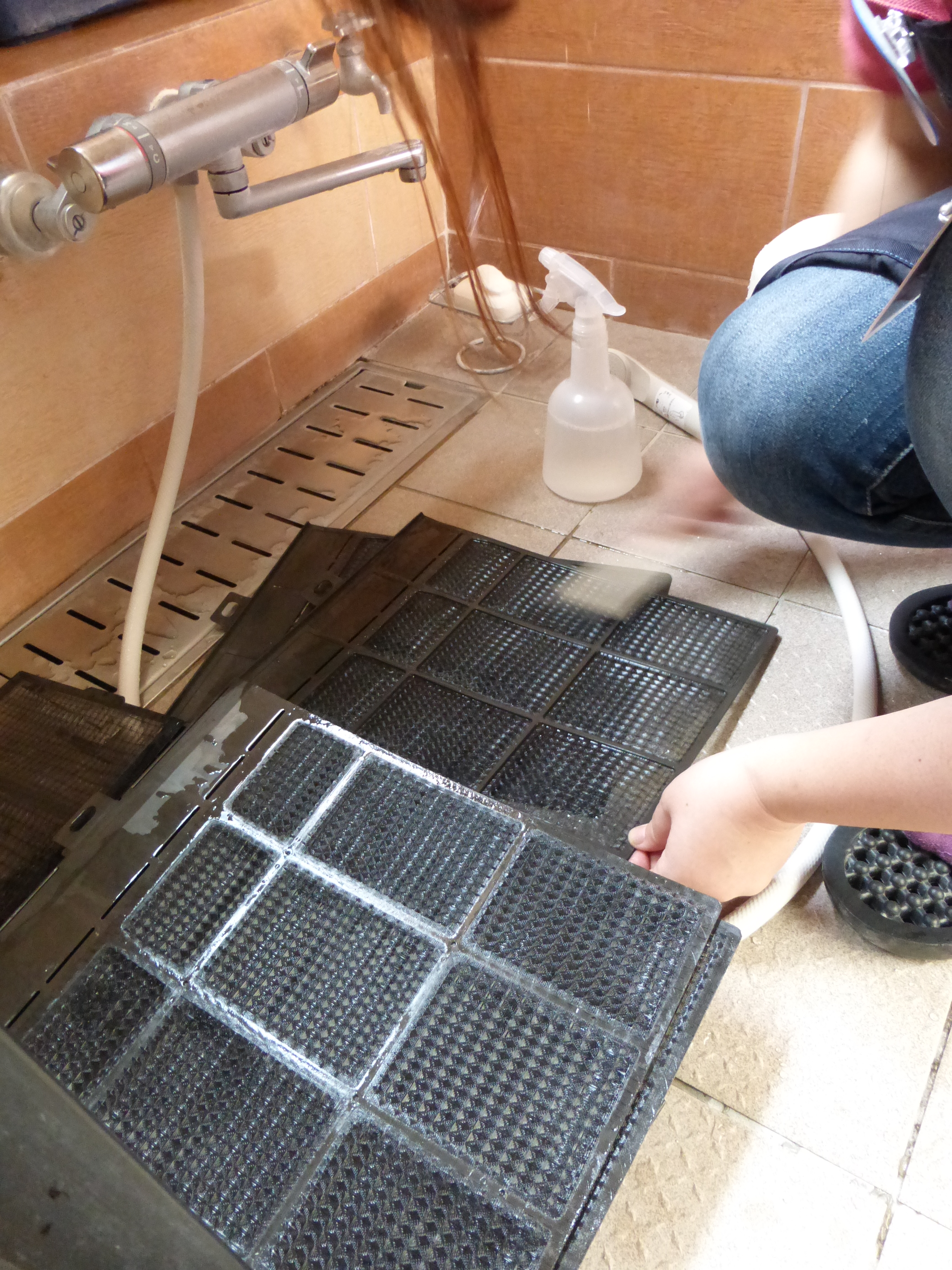 (柿崎)お風呂場をお借りして、フィルターのお掃除をさせて頂きました。
