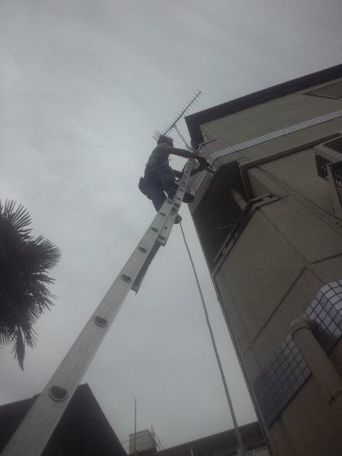 アンテナ工事 2011年7月24日今日は渋谷区笹塚の集合住宅に浜田くんと地デジアンテナ導入工事にきました。