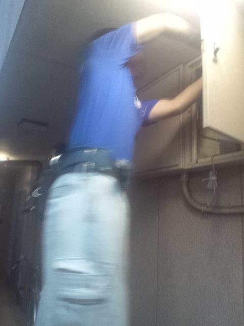 私がアンテナを取り付ける間に浜田くんは汗を汗をかいた体目掛けて襲いかかる「蚊」と闘いながらブースターの取り付けをしてもらいます。