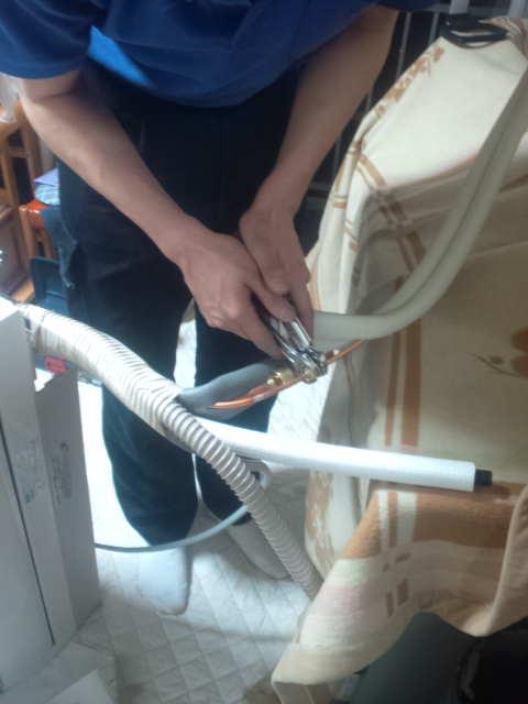 ケイオー日々の仕事 2011年2月28日今日は三浦君のお手伝いでエアコンの交換工事に来ました。