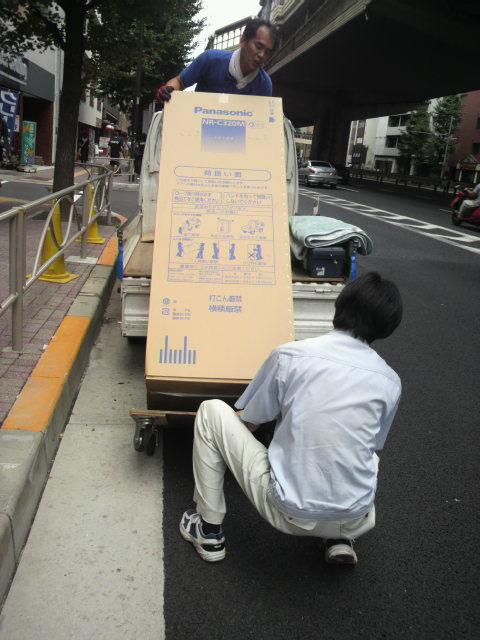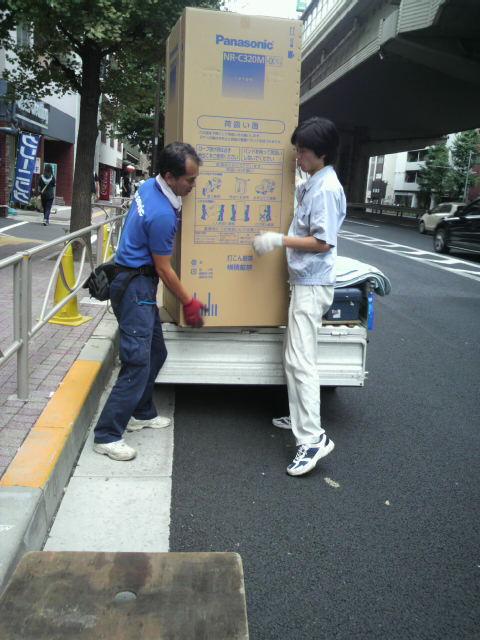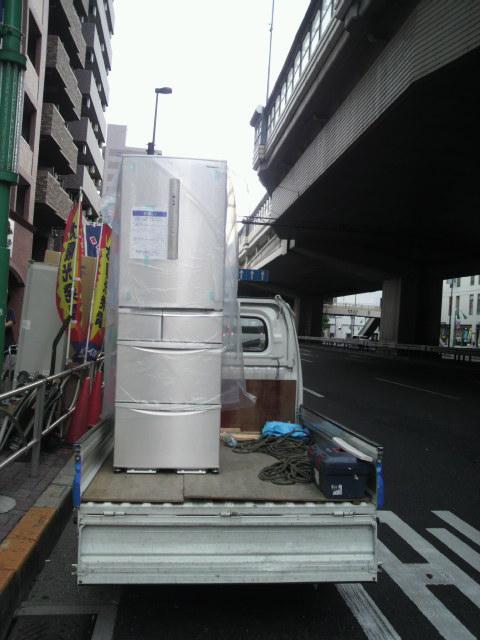 今回は珍しく一日に同じペア(阿部店長&藤沢さん)での冷蔵庫配達が二件ありましたので、配達までの様子を追ってみました。