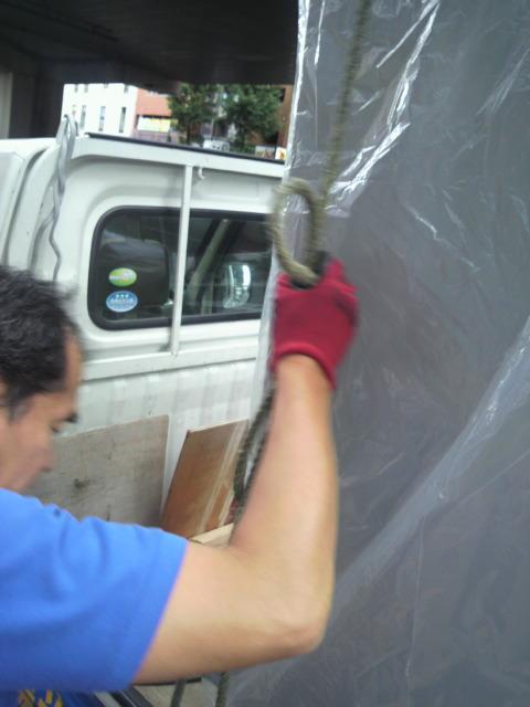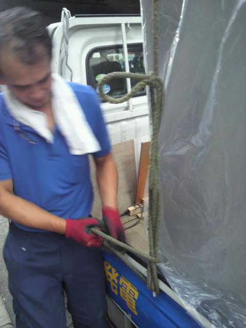 冷蔵庫を固定する縛り方ひとつにしても慎重です。