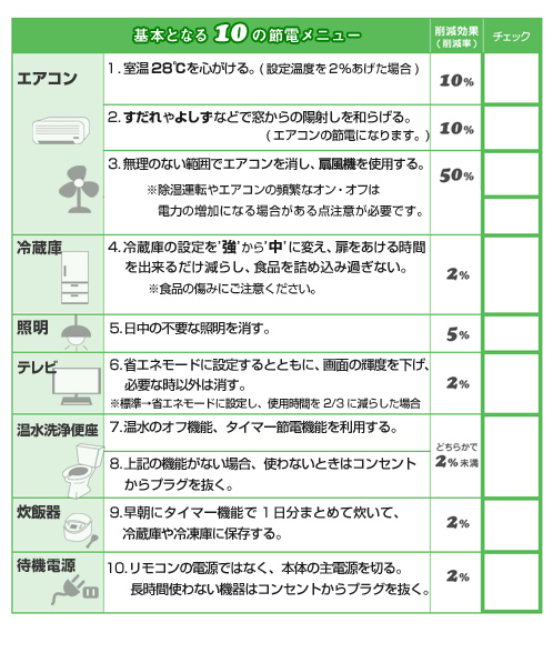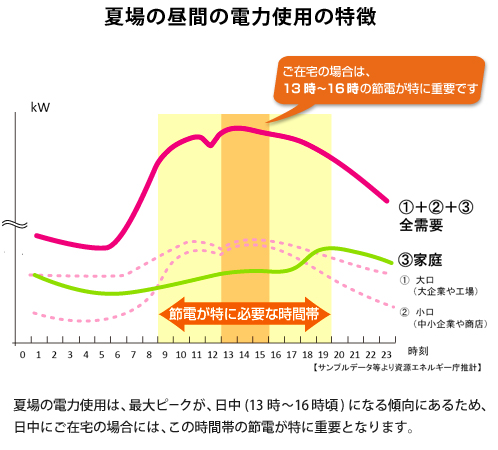 夏季の昼間の割高な電気の使用を、その他の時間帯や夜間の使用に移してもらう(ピークシフト)ことによる節電を促すというものです。
