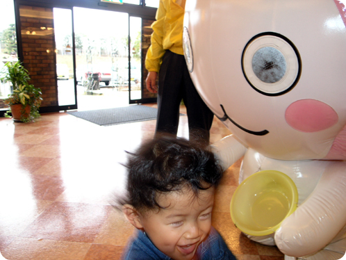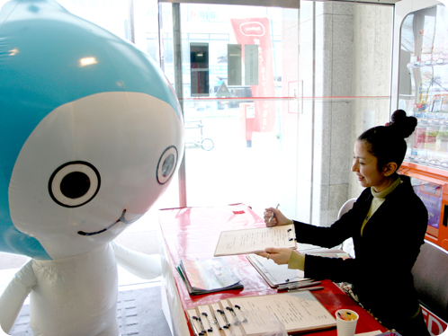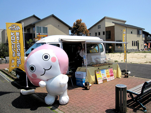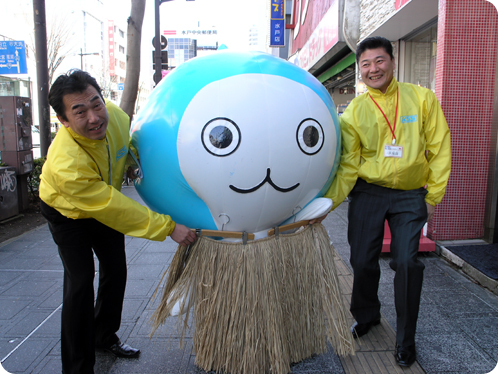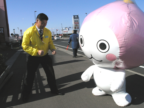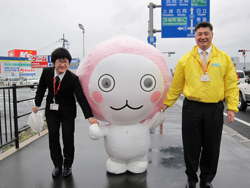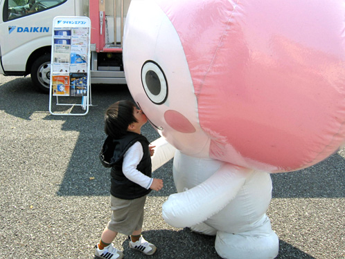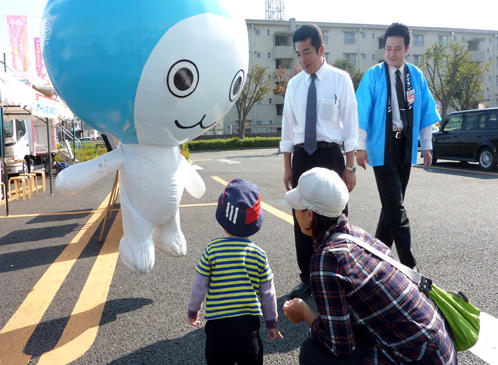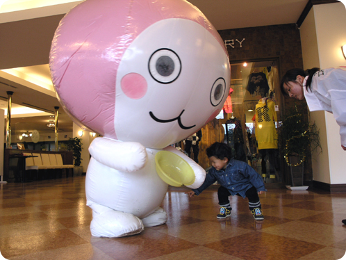 イベントを目当ての方も買い物ついでの方も、この愛くるしいキャラクターを見ると手を振ってくれたり黄色い声援を送ってくれたりギョッとしたりしてくれます。