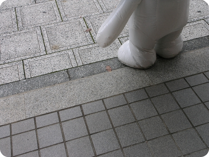 外のモノクロームの世界とは対照的にカラフルなぴちょんくんがお出迎え!