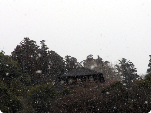 会場の水戸レイクサイドボウルのすぐそばの公園から見える偕楽園の好文亭にも雪に隠れそうな勢い。