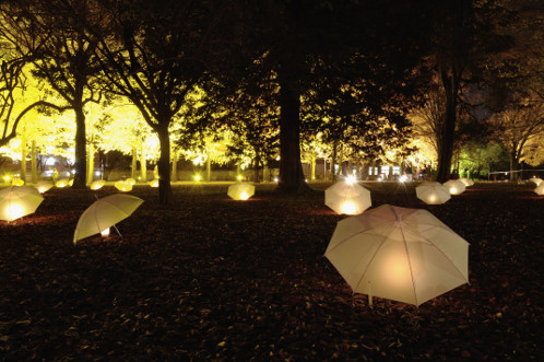 ライブ会場の向かい側には、ご覧のように"傘を使ったキャンドルライトオブジェ"が一定間隔ごとにズラーッと並んでいました。