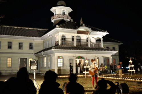県の指定文化財でもある「旧水海道小学校本館」も、この日はライトアップされて輝いておりました。
