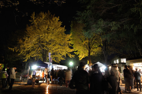昨夜は静謐な美しさに感じられた公孫樹並木ですが、大勢のお客様で賑わったこの夜の公孫樹からは、とても華やかな印象を受けました。