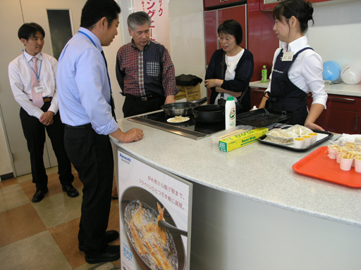 毎回メーカー様からデモンストレーターの方にお越しいただいて、皆様の目の前で(時にはお客様自身に)調理して頂いております。