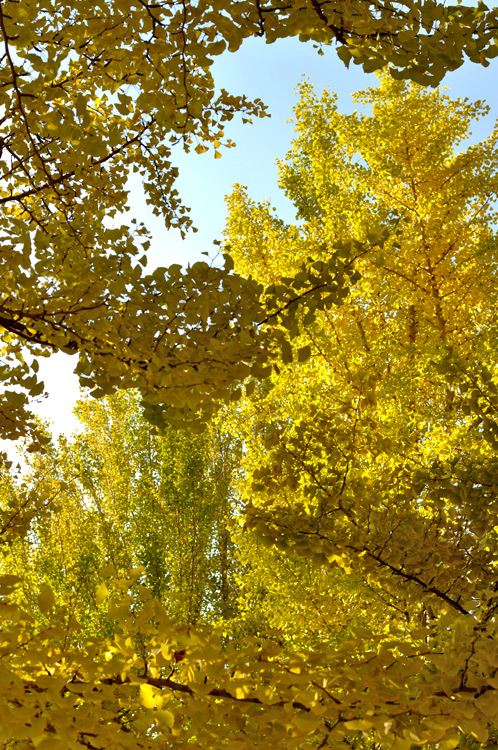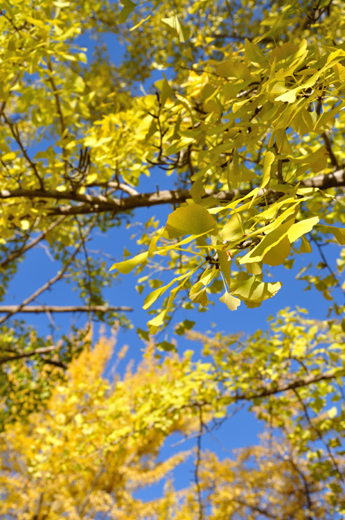黄葉~緑葉~空の青、という具合に偶然のグラデーション。
