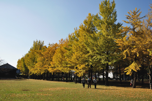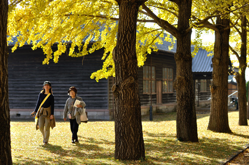 普段は閑散としている歴史館の庭も、いちょうの黄葉と秋晴れを楽しむ人々で賑わいをみせていました。