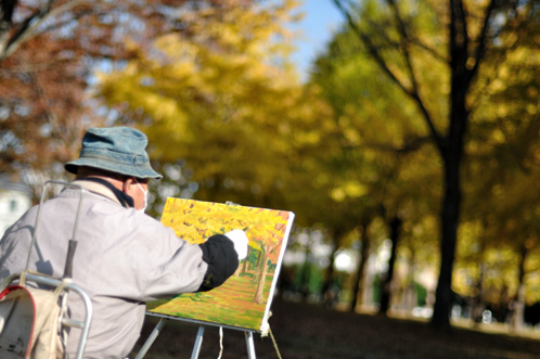今回は黄葉の景色をキャンバスに描いている方々もおられました。
