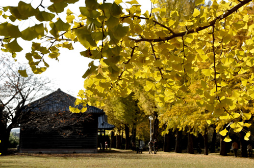 さて、当社の事務所から歩いて5分以内にある茨城県立歴史館は、この時期公孫樹(銀杏=イチョウ)の黄葉で有名です。