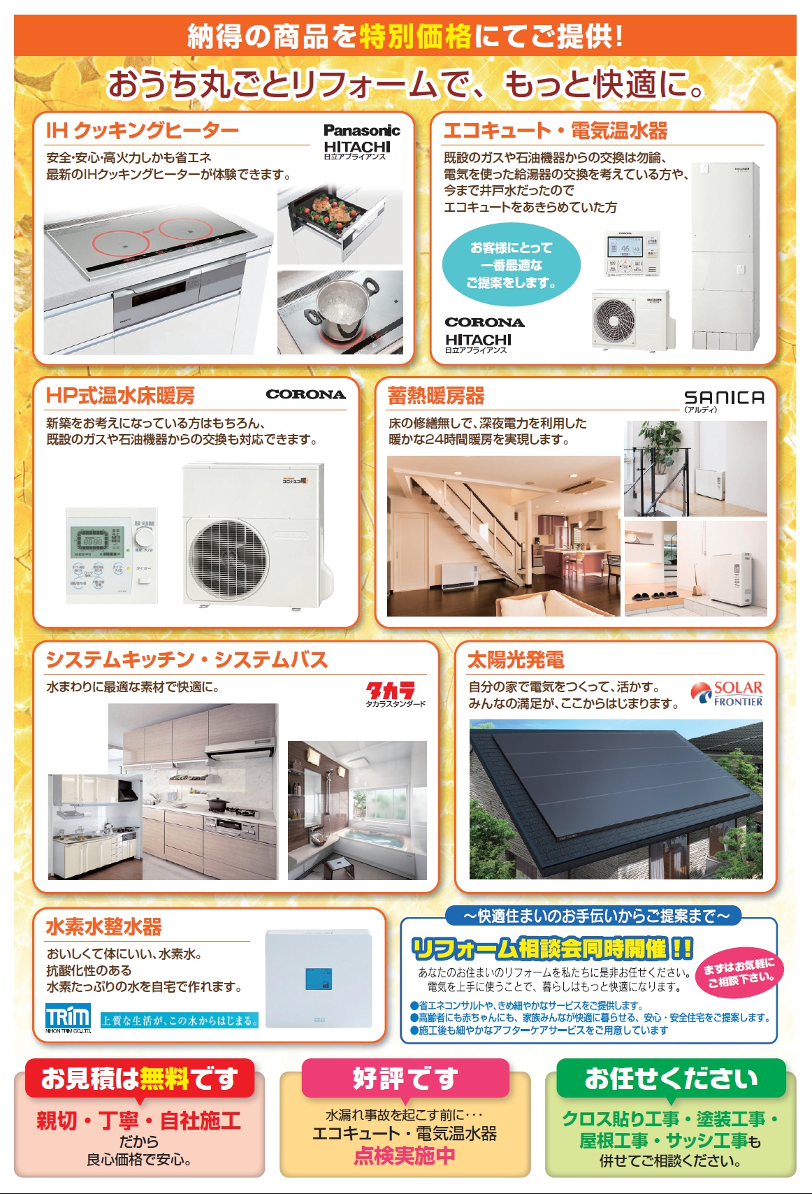 無料のリフォーム相談会も承りますので、これからリフォームをお考えのお客様にはとても良い機会だと思います。