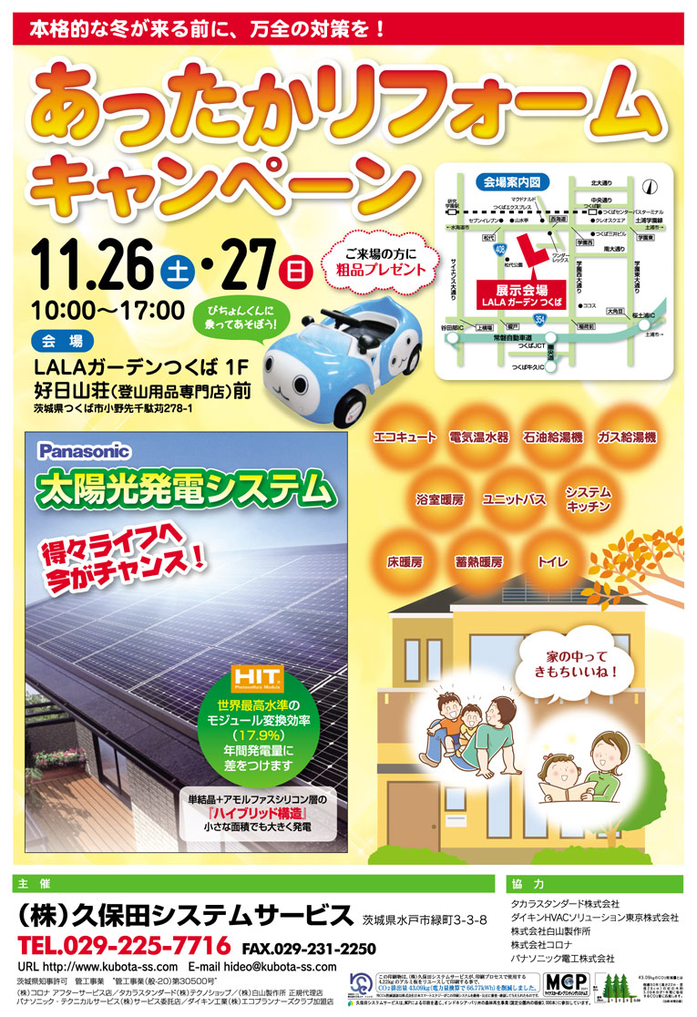 寒い寒い季節へ向けての冬支度に、是非ともご家族・ご友人お誘いあわせのうえ、ドシドシご来場ください!