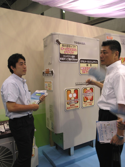 東芝機器株式会社のブースでは一押しのエコキュート「2タンクスリム」を展示してました。