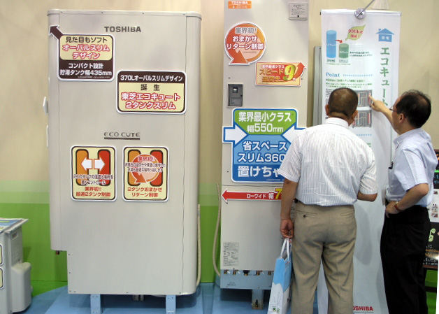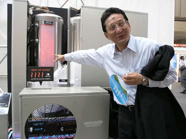 洞爺湖サミットが開かれ環境問題への関心が高まる中で行われた今回のイベント、テーマは「ヒートポンプが地球を救う」です。電気を無駄にせず効率よく使うことができ、環境にも家計にも優しいヒートポンプ技術を使った新製品が出展されました。